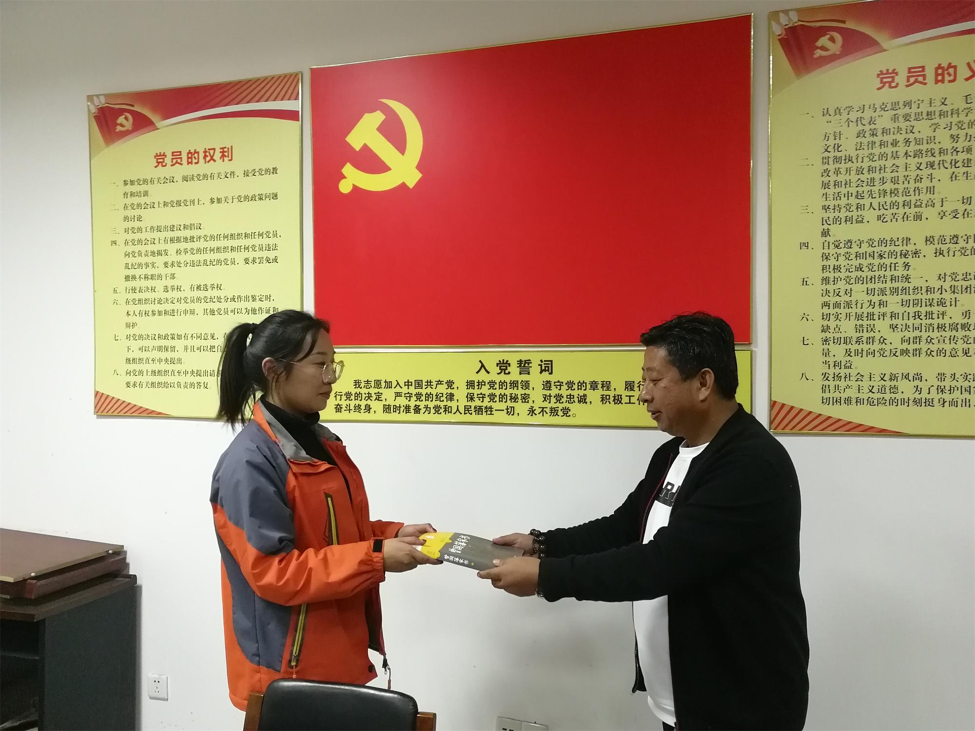 活動(dòng)前,支部副書記申俊連帶領(lǐng)大家學(xué)習(xí)了《習(xí)近平關(guān)于“不忘初心、牢記使命”論述摘編》部分章節(jié)。隨后,申俊連和生日黨員分別面向黨旗舉起右拳,重溫了入黨誓詞。申俊連跟年輕黨員們分享了自己從1987年11月入黨至今的成長(zhǎng)歷程以及入黨歷程,并發(fā)表了“黨員政治生日”感言,他認(rèn)為作為一名黨員要做到對(duì)黨忠誠(chéng)、有擔(dān)當(dāng)、講奉獻(xiàn),做合格黨員。要不忘初心,克己奉公、樂(lè)于奉獻(xiàn),時(shí)刻牢記自己是一名共產(chǎn)黨員,為年輕黨員做好表率,最后申俊連為生日黨員送上了生日禮物《曾國(guó)藩家書》讀物。