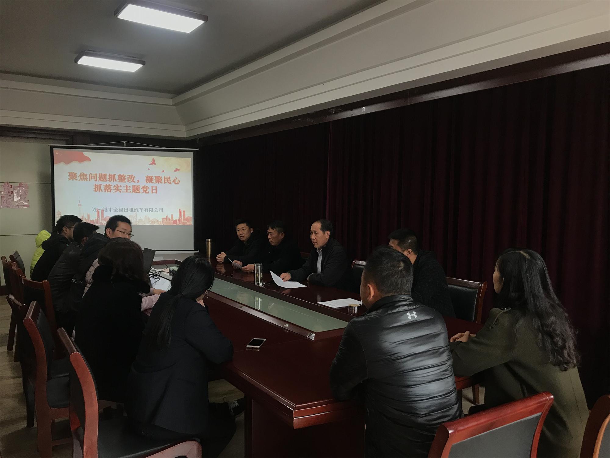根據(jù)市委“不忘初心、牢記使命”主題教育領(lǐng)導(dǎo)小組辦公室及汽服黨委統(tǒng)一部署,11月25日上午,全福公司黨支部在公司三樓會(huì)議室開展不忘初心、牢記使命“聚焦問題抓整改,凝聚民心抓落實(shí)”主題黨日活動(dòng)。