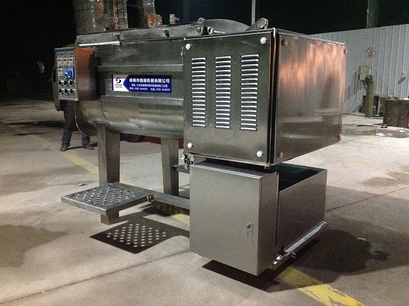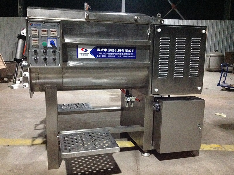 真空拌餡機是用于混料的設備,效率高,便于操作,是制作風干腸類產品、粒狀、泥狀混合腸類產品、丸類產品的設備,同時也是生產水餃、餛飩類面食產品的可選設備。 通過真空裝置使物料處于負壓狀態(tài)。使物流充分膨脹,無氣泡,彈性好,色澤鮮艷。并大限度的提取蛋白質,是改善產品品質的理想設備。采用平行雙軸結構,斜板式槳葉,物料在料斗中翻動的同時作圓周運動,使各種物料攪拌的更加均勻.采用雙速雙動力,根據所拌餡料的種類及工藝選擇不同的轉速和不同的運轉方式進行攪拌。真空密封裝置全部采用符合衛(wèi)生標準的密封件。在真空狀態(tài)下,餡料攪拌均勻,充分膨脹,彈性好,色澤鮮艷并大限度地提高蛋白質。上蓋及排料門的密封用硅膠條,操作方便,可靠耐用。 整機采用不銹鋼,易于清洗,美觀大方。符合國家衛(wèi)生標準。電氣安全符合國家標準。