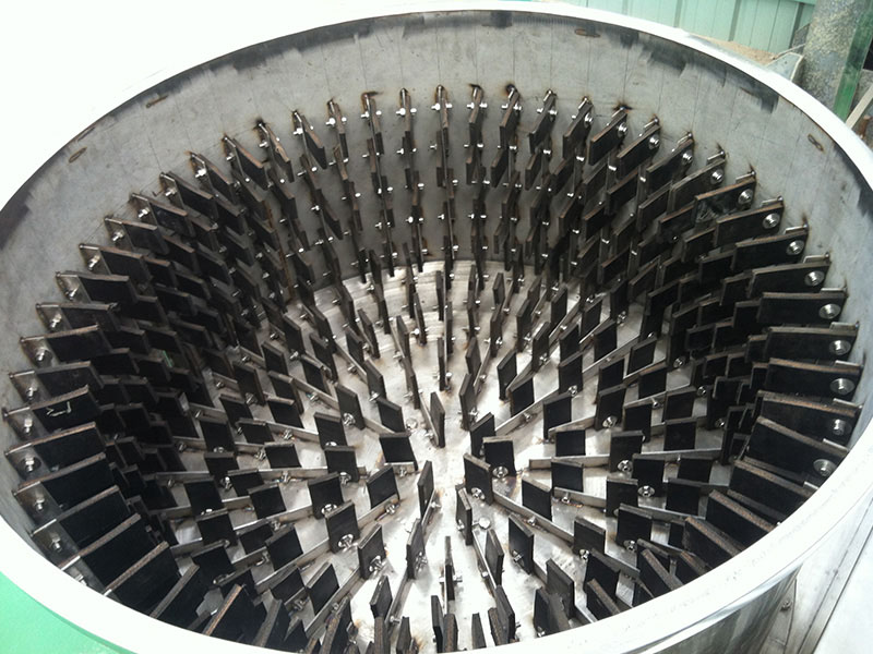 該機(jī)用于豬蹄、豬耳、豬鼻等去毛后的去黃皮、黑皮的工作和去除附著在表面余毛雜物等工作。本機(jī)通過(guò)減速機(jī)帶動(dòng)甩盤轉(zhuǎn)動(dòng),使物料在筒內(nèi)高速旋轉(zhuǎn)碰撞、摩擦,從而實(shí)現(xiàn)脫黑皮和打毛的要求。