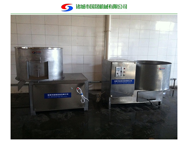 該機(jī)用于豬蹄、豬耳、豬鼻等去毛后的去黃皮、黑皮的工作和去除附著在表面余毛雜物等工作。本機(jī)通過減速機(jī)帶動甩盤轉(zhuǎn)動,使物料在筒內(nèi)高速旋轉(zhuǎn)碰撞、摩擦,從而實現(xiàn)脫黑皮和打毛的要求。
